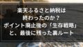 お買い物マラソン完走でポイント10倍!みたいな夢の世界は崩壊しましたが、それでもSPUの基本倍率(モバイル契約や銀行連携)で数%をもぎ取れるのは楽天だけです。